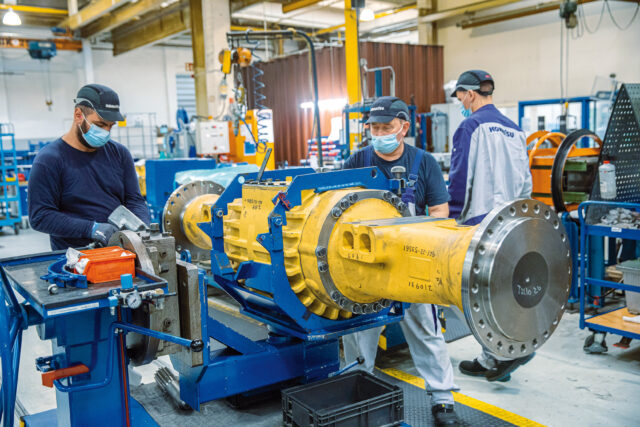Unsere Lieferanten hatten durch Engpässe beim Rohmaterial, durch Corona und durch Schiffsverspätungen große Schwierigkeiten, pünktlich zu liefern. Durch einen akuten Engpass bei Hydraulik-Komponenten für unsere großen Maschinen standen wir trotz super Auftragslage kurz davor, die Montagebände anhalten zu müssen.