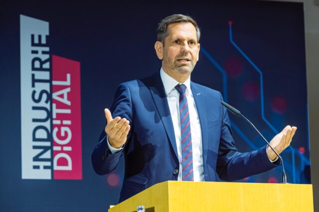 Olaf Lies mit klaren Botschaften bei „Industrie Digital 2022“. Rund 300 Unternehmerinnen und Unternehmer tauschen sich im Schloss Herrenhausen zu Themen rund um die Digitalisierung aus.
