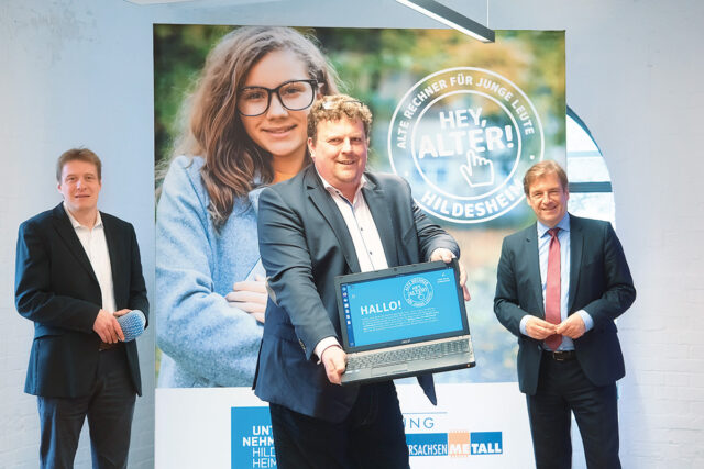 Der Impuls ging von der AGV Braunschweig aus. In Hildesheim haben die Stiftung NiedersachsenMetall sowie der Verband Unternehmer Hildesheim die Umsetzung in Eigenregie umgesetzt und bis heute rund 1.000 Laptops gesammelt. „Eine digitale Infrastruktur für Kinder ist außerordentlich wichtig, um nicht abgehängt zu werden“, sagt Stefan Hinz, Geschäftsführer des IT-Dienstleister HCT in Hildesheim. Der Unternehmer ist der Projektleiter von ‚Hey, Alter!‘ in Hildesheim.