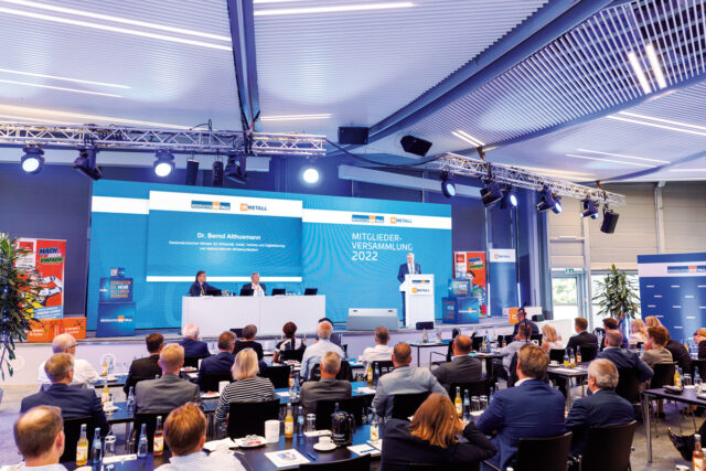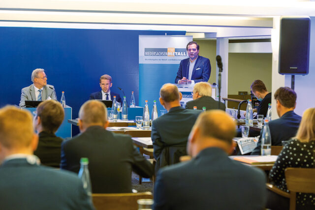 Nach zwei Corona-Jahren öffnete im Juli 2022 endlich wieder die Ideen Expo, Europas größtes Jugendevent für Naturwissenschaften und Technik, ihre Tore. Nicht nur 425.000 Besucher strömten auf das hannoversche Messegelände, auch zahlreiche Unternehmerinnen und Unternehmer von NiedersachsenMetall und IN-Metall trafen sich dort zur Mitgliederversammlung. Nach einer Tour über die IdeenExpo begrüßten NiedersachsenMetall-Präsident Wolfgang Niemsch und Hauptgeschäftsführer Dr. Volker Schmidt die Gäste zum gemeinsamen Teil der Versammlung. Dieses Mal gab Dr. Bernd Althusmann, zu diesem Zeitpunkt niedersächsischer Wirtschaftsminister, einen Impulsvortrag. Mit der Zukunft des Autostandorts Deutschland ging es auch im Anschluss an die Regularien und Wahlen weiter, beim Science Talk der Ideen Expo im Sprengel Museum. Wissenschaftsjournalist und Moderator Ranga Yogeshwar diskutierte dort unter dem Titel „Autos mit Zukunft?“ mit prominenten Gästen unter anderem über die Mobilität der Zukunft.