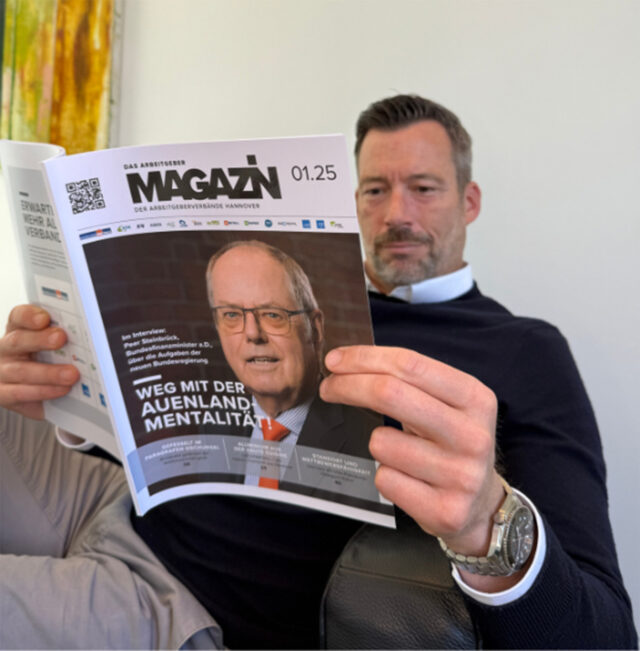 Ergänzt wird der Newsletter durch das neu gestaltete „Arbeitgeber MAGAZIN“, das viermal jährlich erscheint. Mit Reportagen, Porträts, Interviews und Analysen bietet es Raum für Tiefgang und Perspektivwechsel. Es zeigt die Vielfalt der unter dem Dach der Arbeitgeberverbände vertretenen Unternehmen, vom Maschinenbau über Verpackung und Kautschuk bis hin zu Medien und Krankenkassen. Dabei steht stets das verbindende Motto im Mittelpunkt: „Erwarten Sie mehr als einen Verband.“