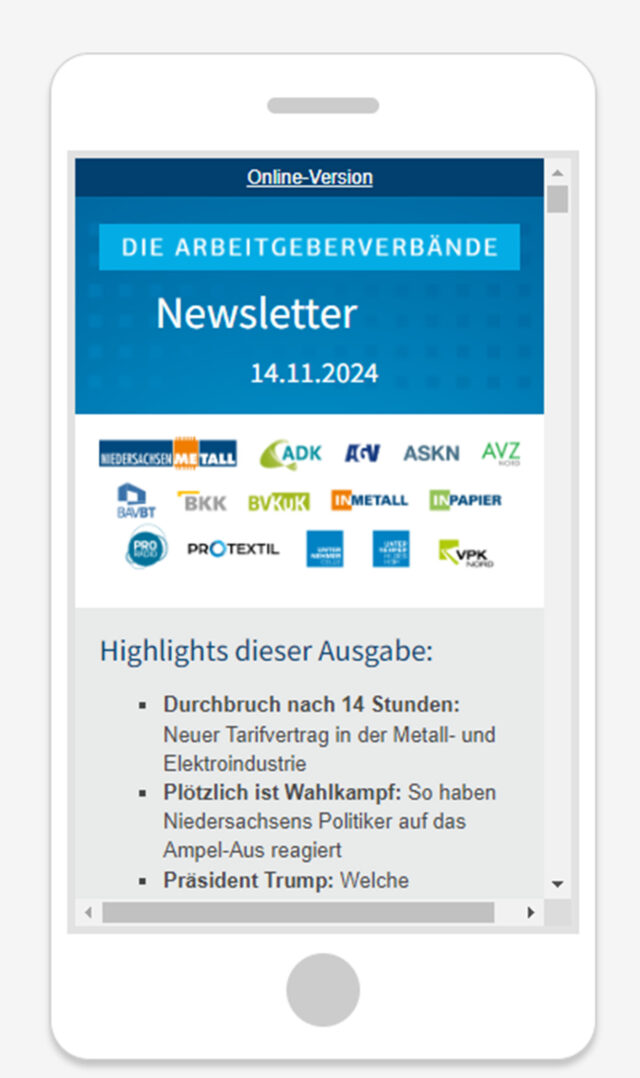 Der neue Arbeitgeber-Newsletter liefert monatlich komprimierte Informationen mit hoher Aktualität und direktem Nutzwert. Ob politische Entscheidungen, arbeitsrechtliche Neuerungen oder Veranstaltungsankündigungen – das Format richtet sich an alle, die schnell und zuverlässig auf dem Laufenden bleiben wollen.